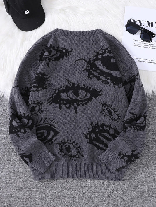 New Popular Abstract Eye Jacquard Pattern Pullover Sweater