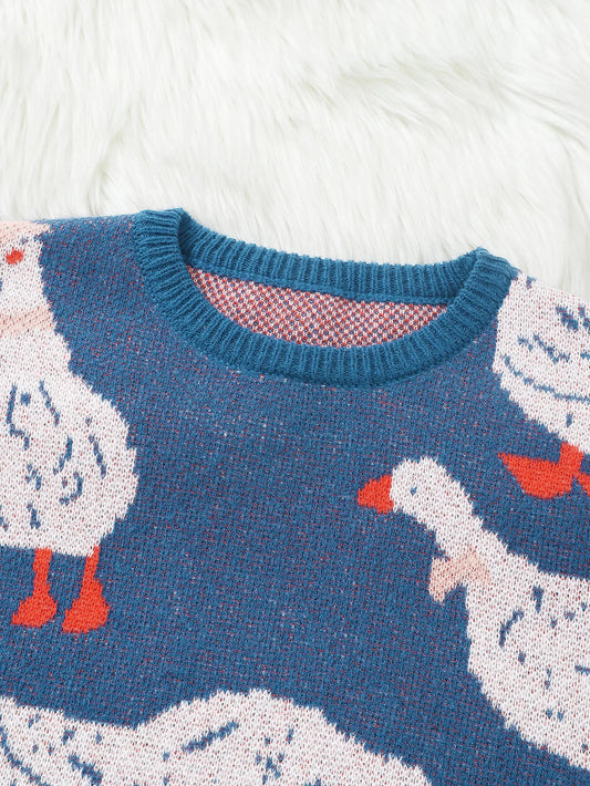 Duck Jacquard Pattern Sweater Knitted Pullover