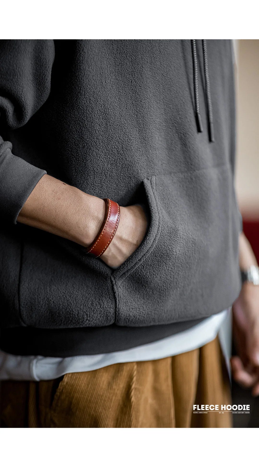 Maden Casual Polar Fleece Hooded Sweatshirt Solid Color Pullover with Face Mask